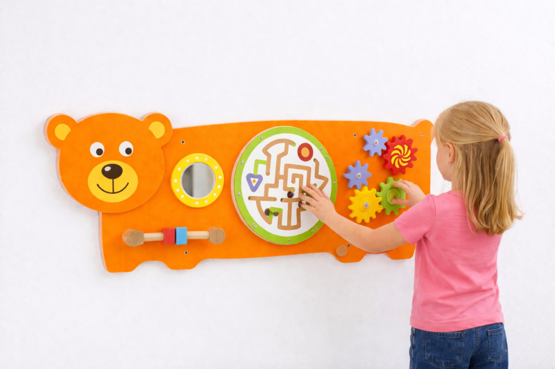 Wandspel | Wandspeelbord BeerDit mooie Wandspel Beer van Kidsplaytables maakt uw wachtruimte of kinderdagverblijf compleet. Onze speelwanden bevorderen de herkenning en vaardigheden van het kind van de verschillende vormen op een speelse manier.