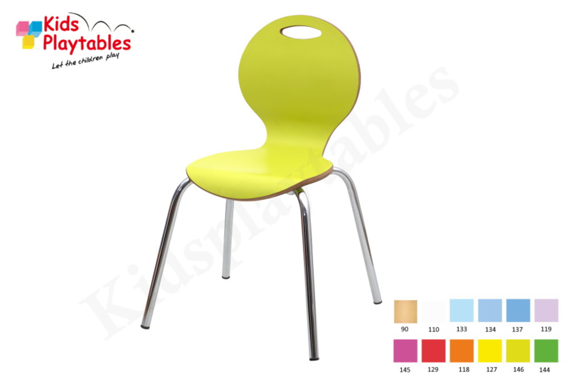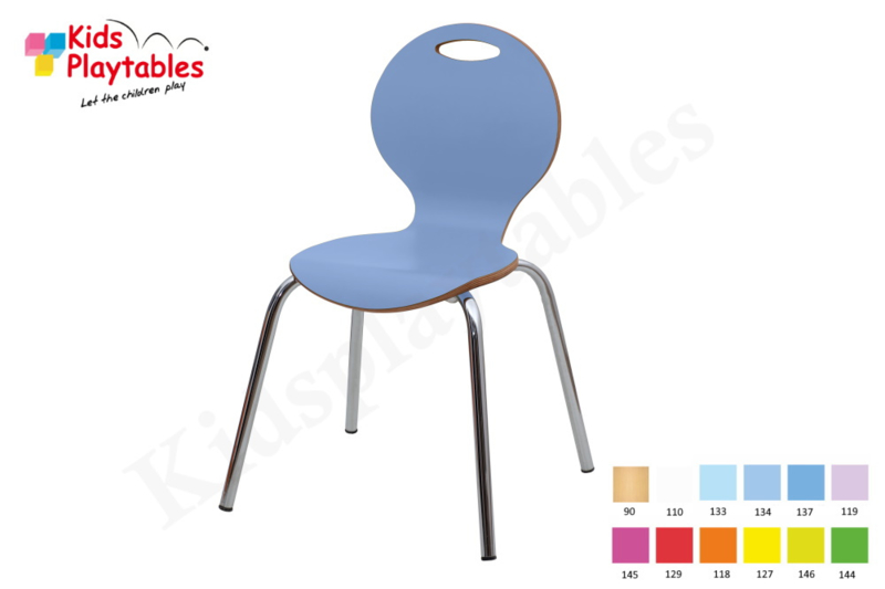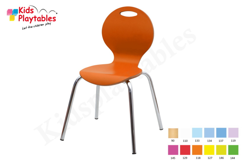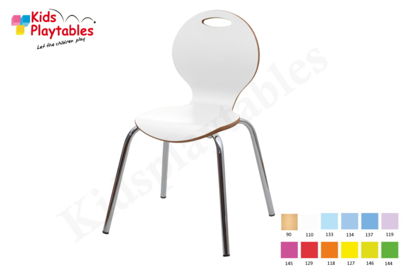 OverzichtHouten Stapelbare HPL Stoel, Stapelstoel Luna met metalen poten van hoogwaardige kwaliteit speciaal voor de KDV, BSO of gewoon voor thuis
