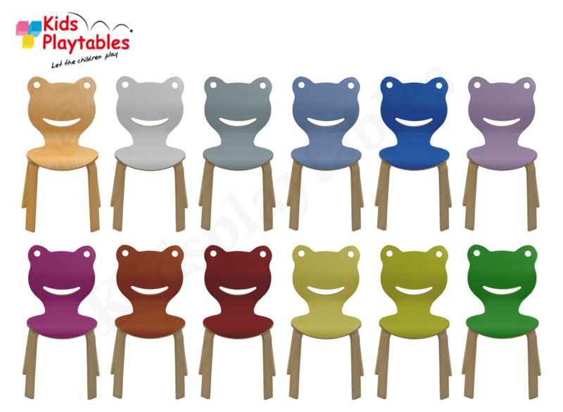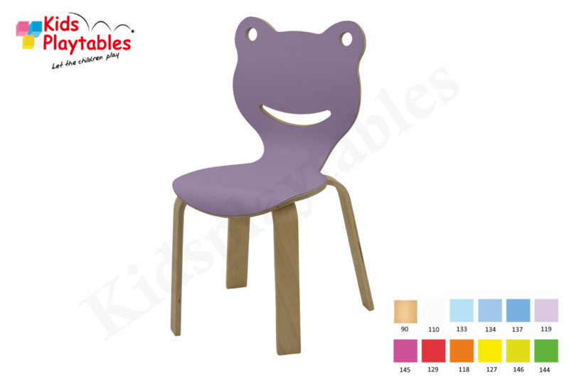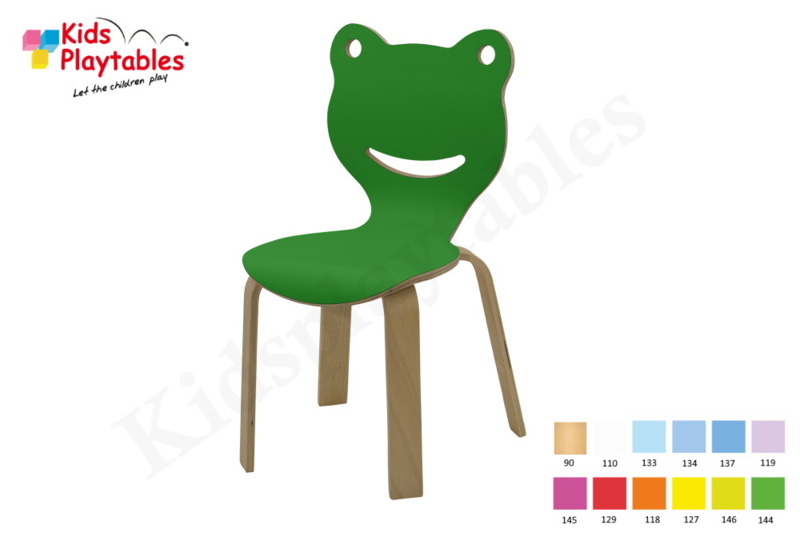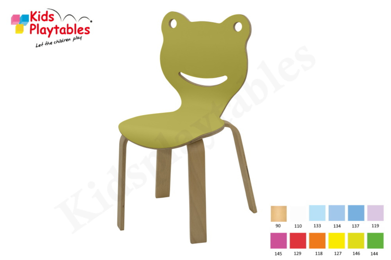 OverzichtHouten Stapelbare HPL stoel , Stapelstoel Kikker van hoogwaardige kwaliteit speciaal voor de KDV, BSO of gewoon voor thuis